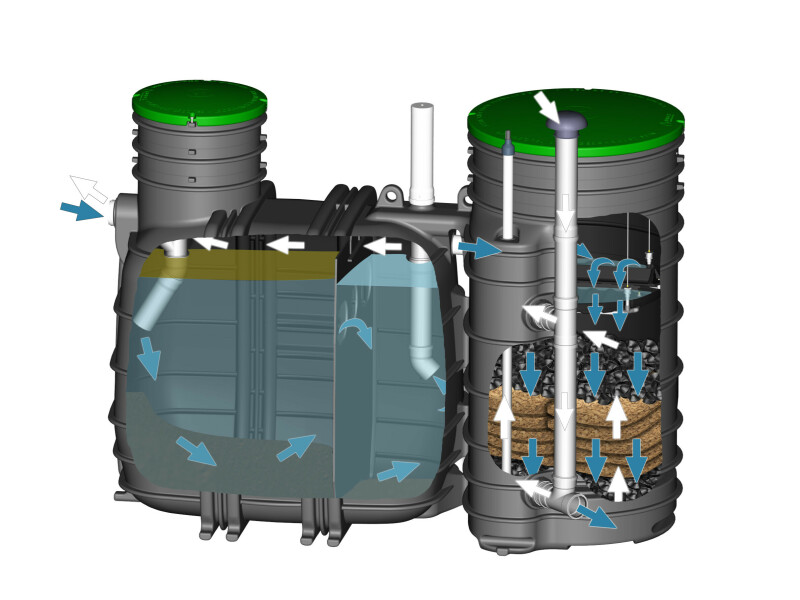 If the treated water is to be discharged at a higher level, the MONOBLOCK system is designed to accept a small pump in an integrated pumping chamber designed for this purpose.